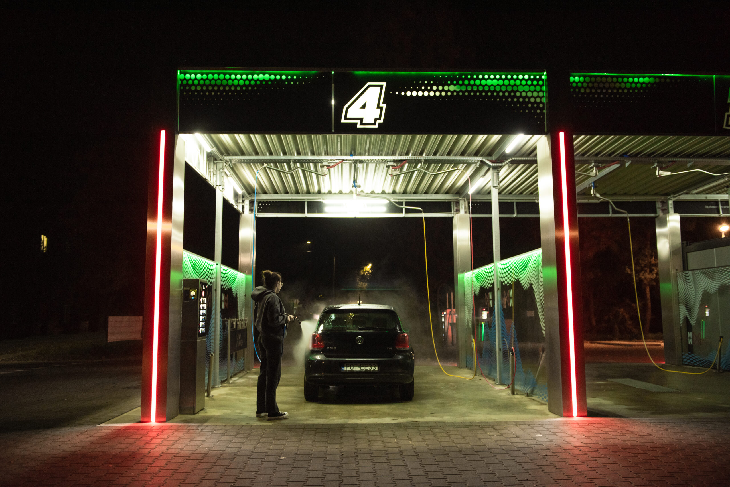 - Wygoda – brak konieczności szukania drobnych lub płatności na miejscu — myjesz i jedziesz.